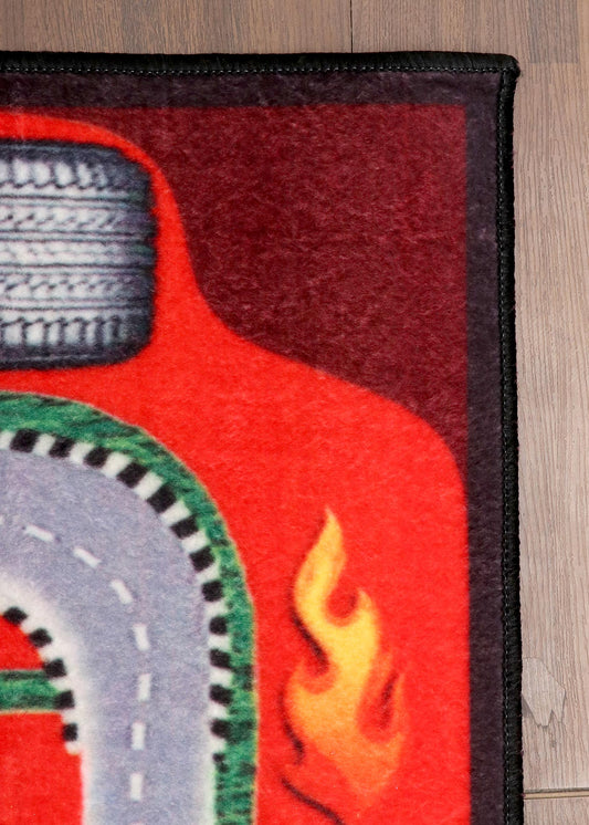 Red Modish Racing Car Rug for Kids