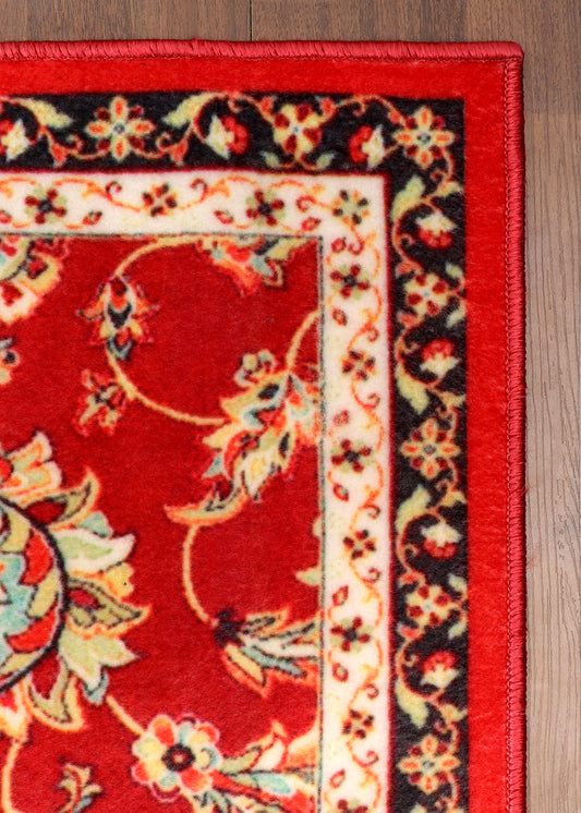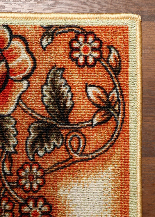 Red and Cream Non-Woven Floral Rug – Felt Backing