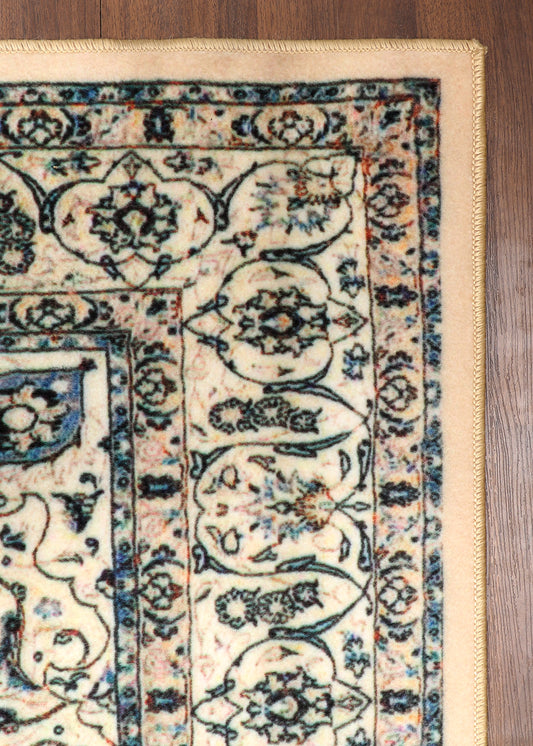Luxurious Midnight Non-Woven Floral Medallion Rug with TPR Backing