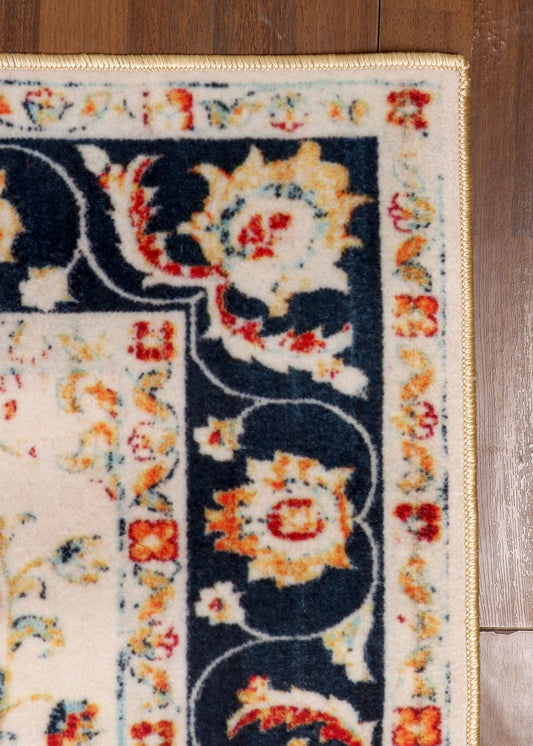 Ivory Floral Medallion Rug – Traditional Design with TPR Backing