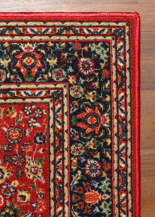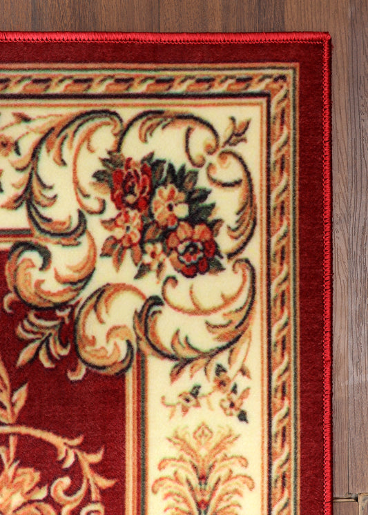 Vibrant Red Medallion Floral Rug – Felt Backing