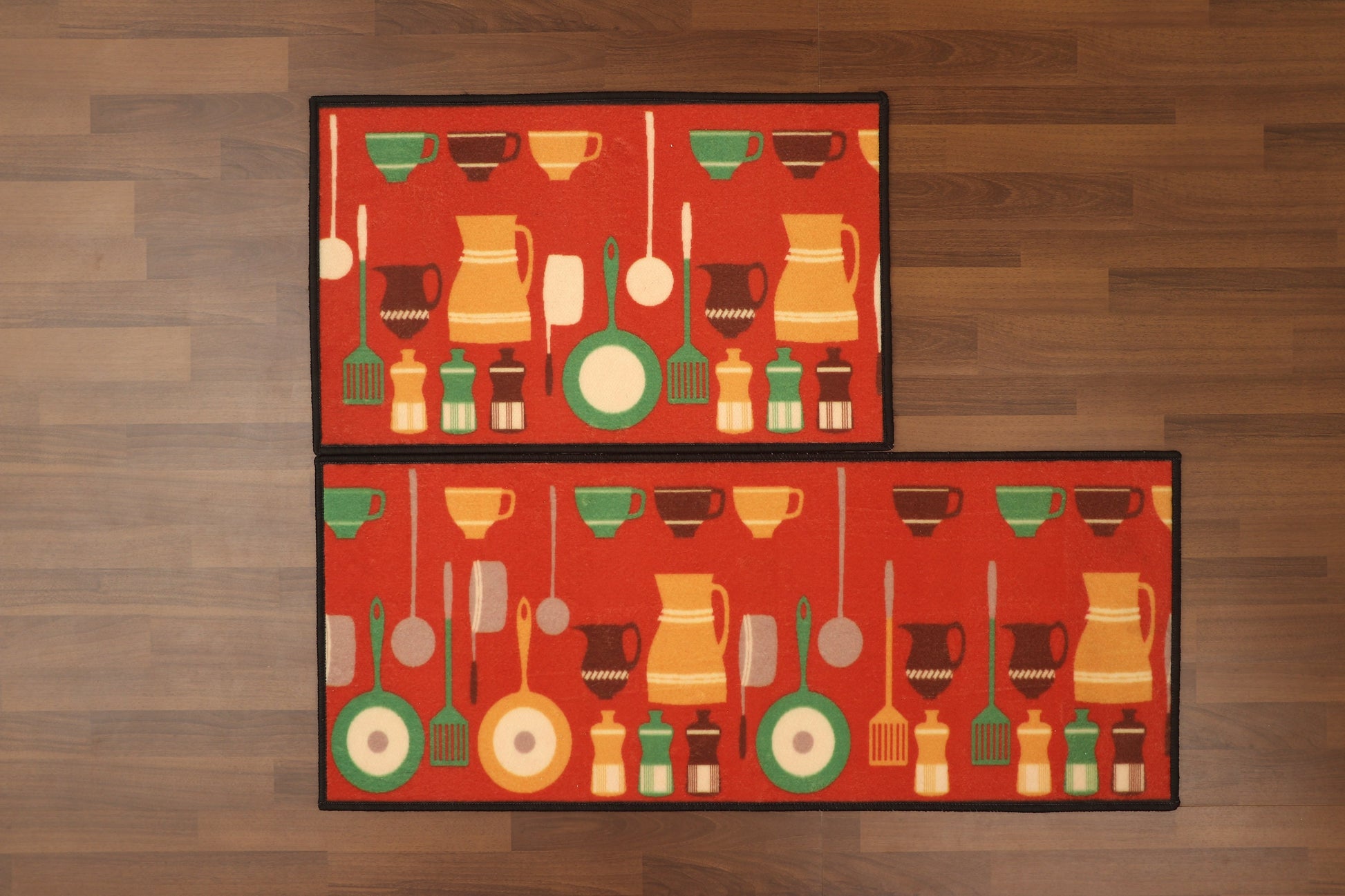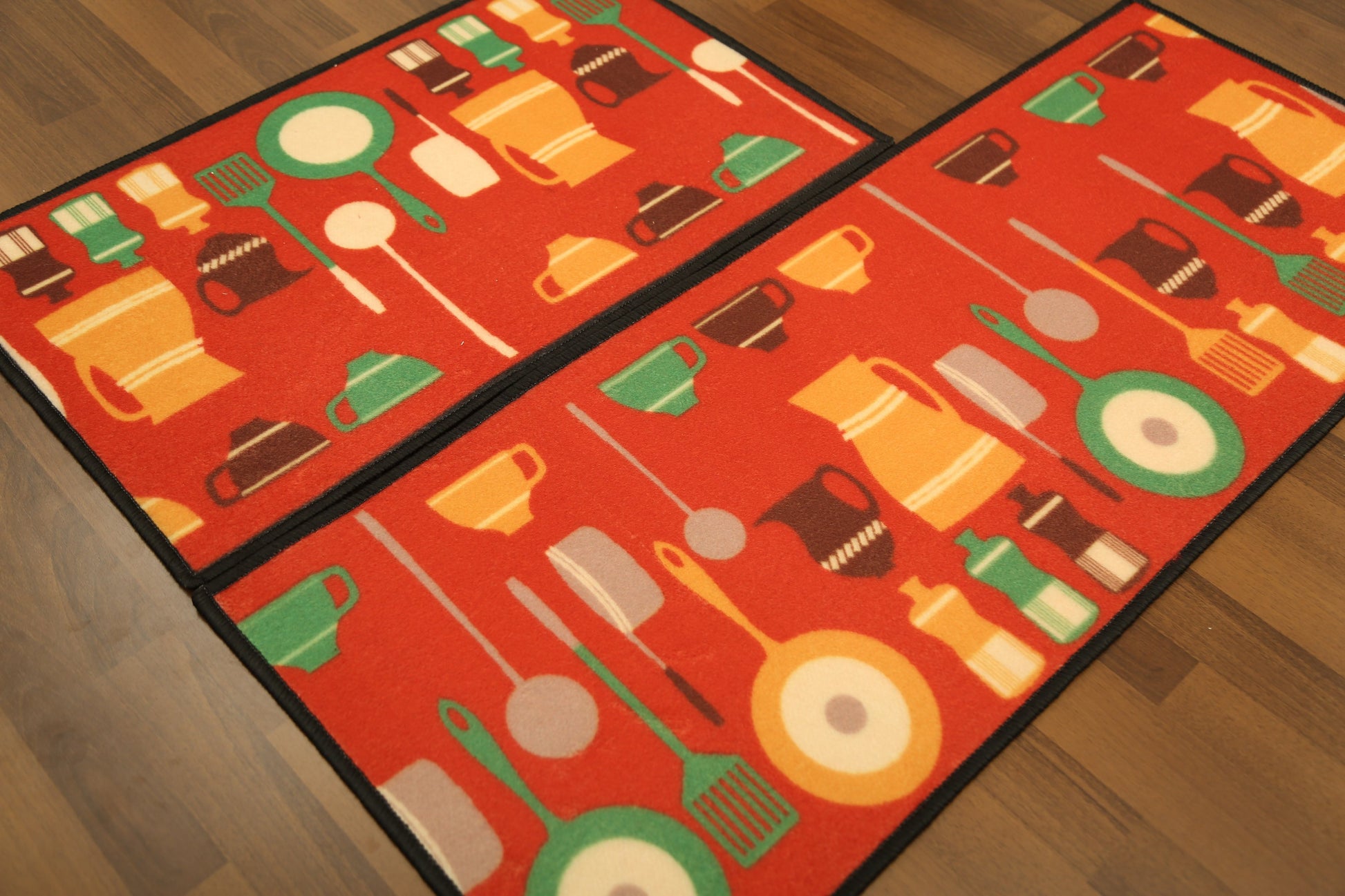 Red With Multi Color Utensils & Geometric Pattern Print Kitchen Mat Set