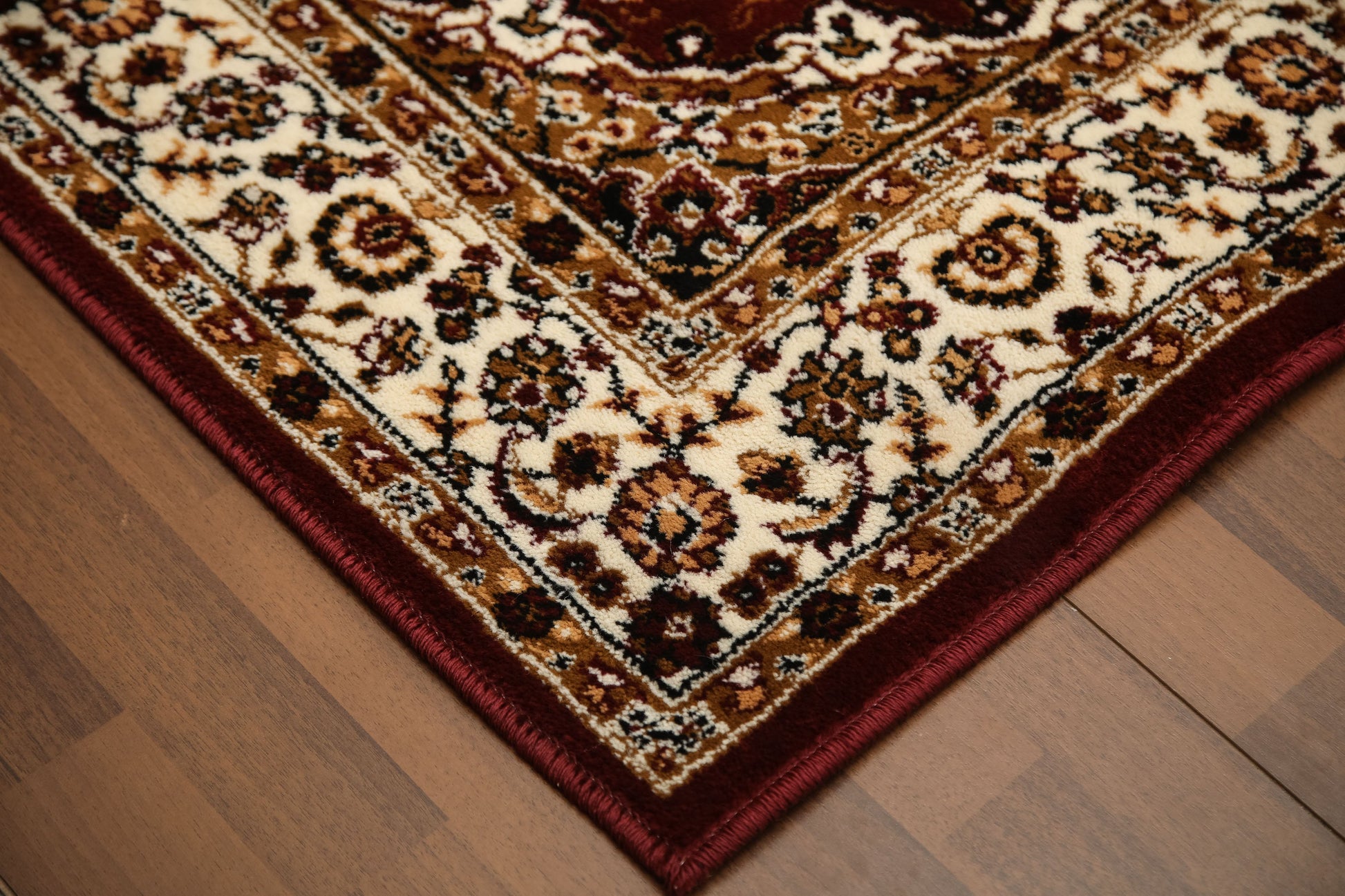Beige and Maroon Floral Printed Rectangle Rug