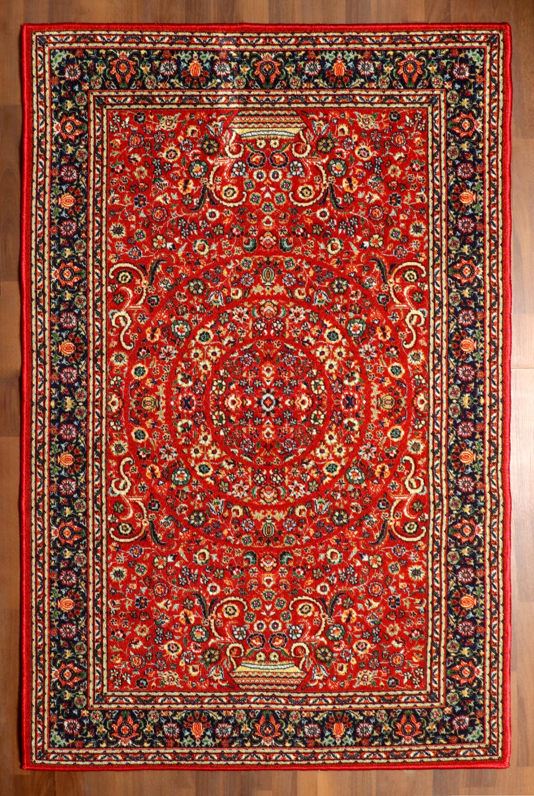 Traditional Persian Design: Rich red hues with intricate medallion and floral patterns.