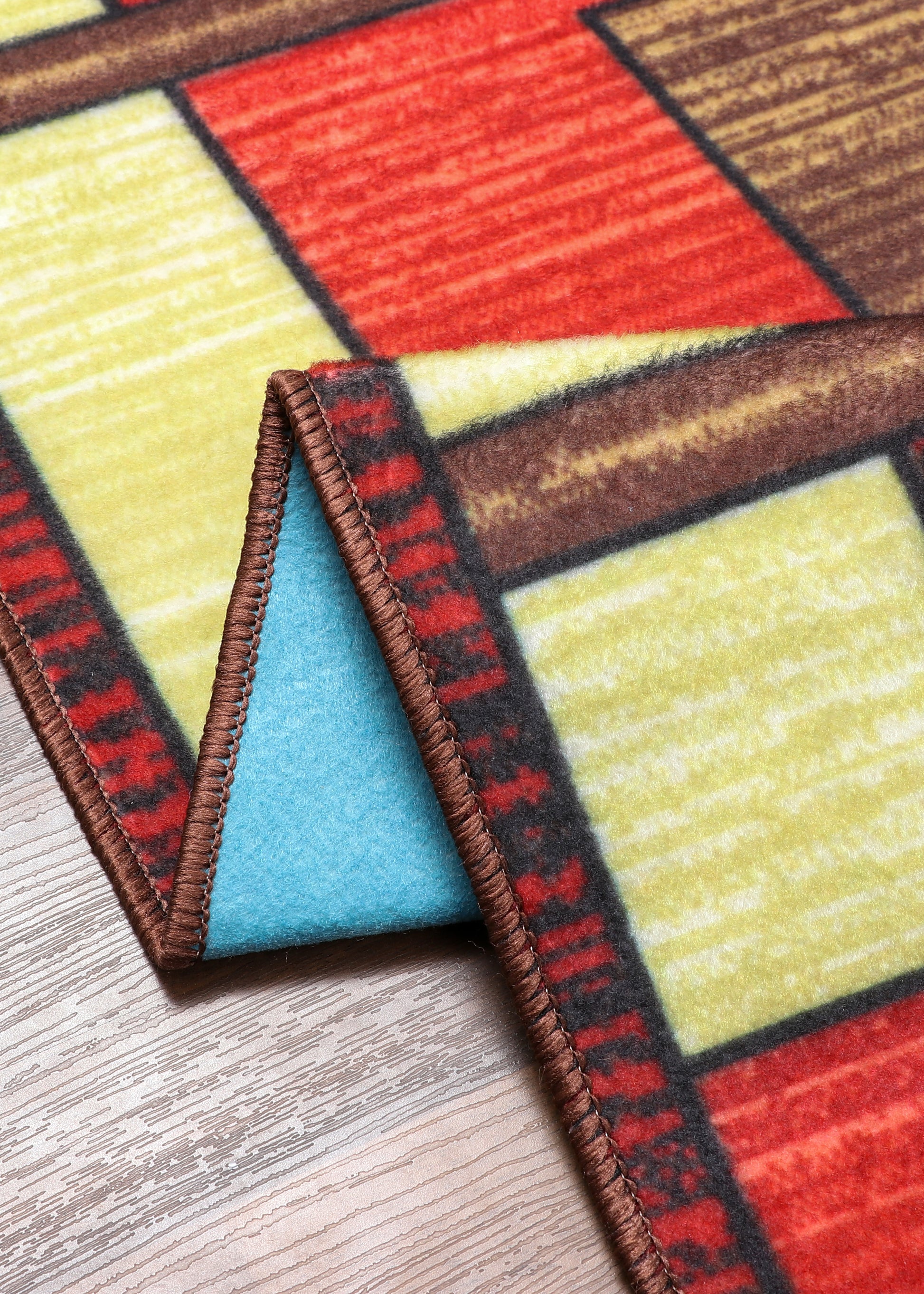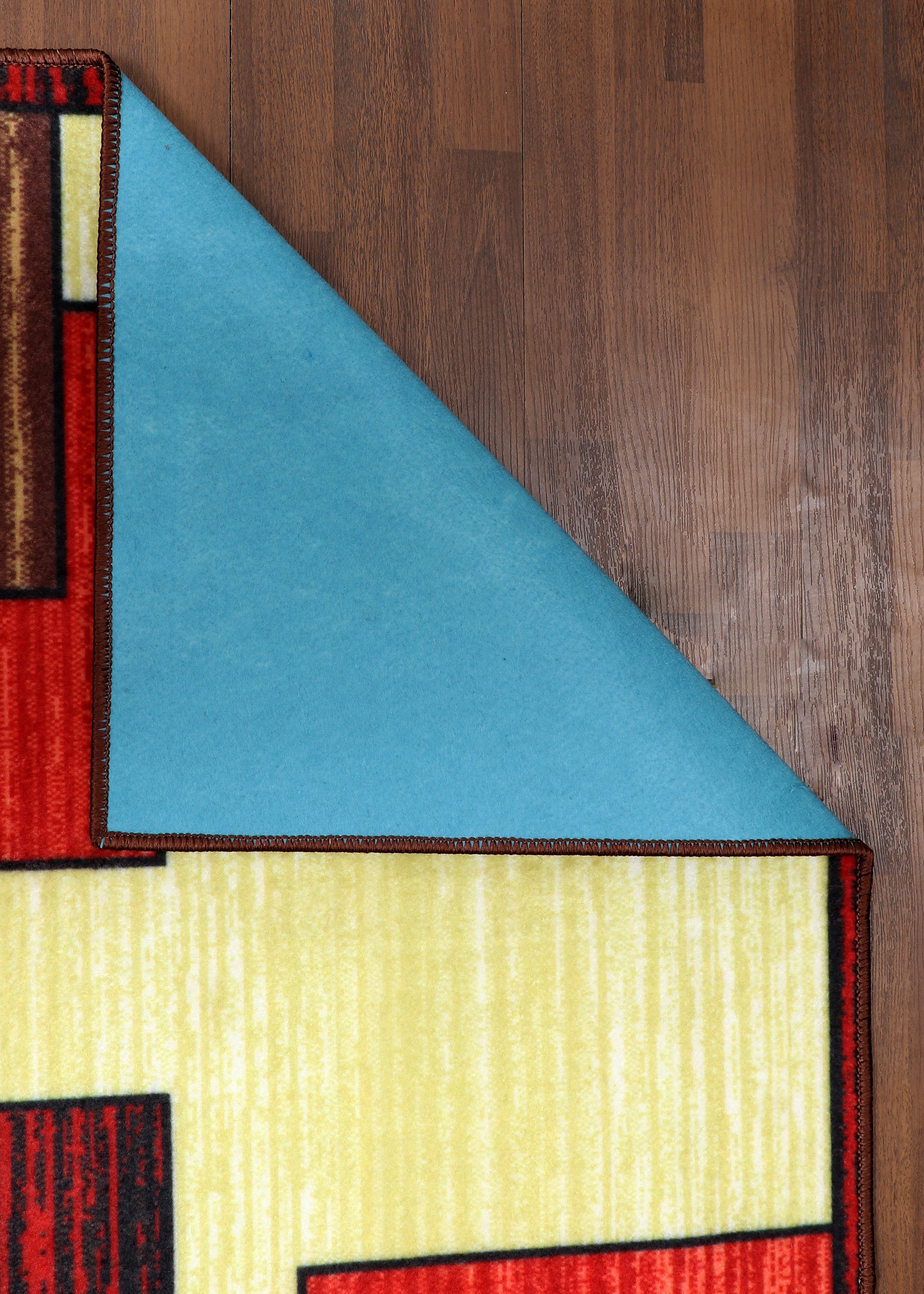 Bring bold, contemporary style to your space with this striking geometric area rug. Featuring a dynamic mix of red, yellow, and brown rectangular patterns, this rug makes an eye-catching statement, perfect for modern interiors. The soft felt backing provides added comfort and helps keep the rug in place, making it ideal for living rooms, offices, or bedrooms where style and functionality matter.