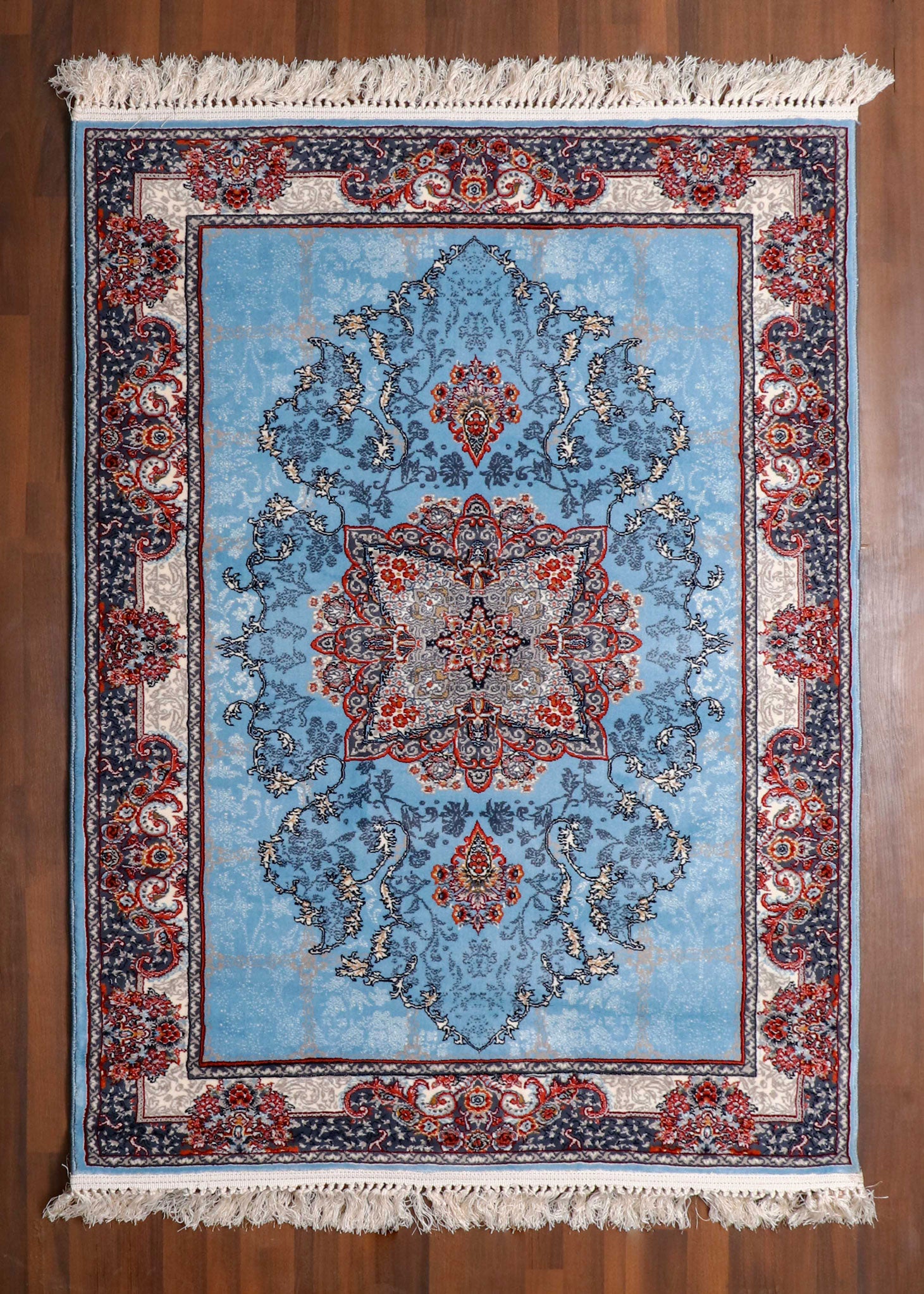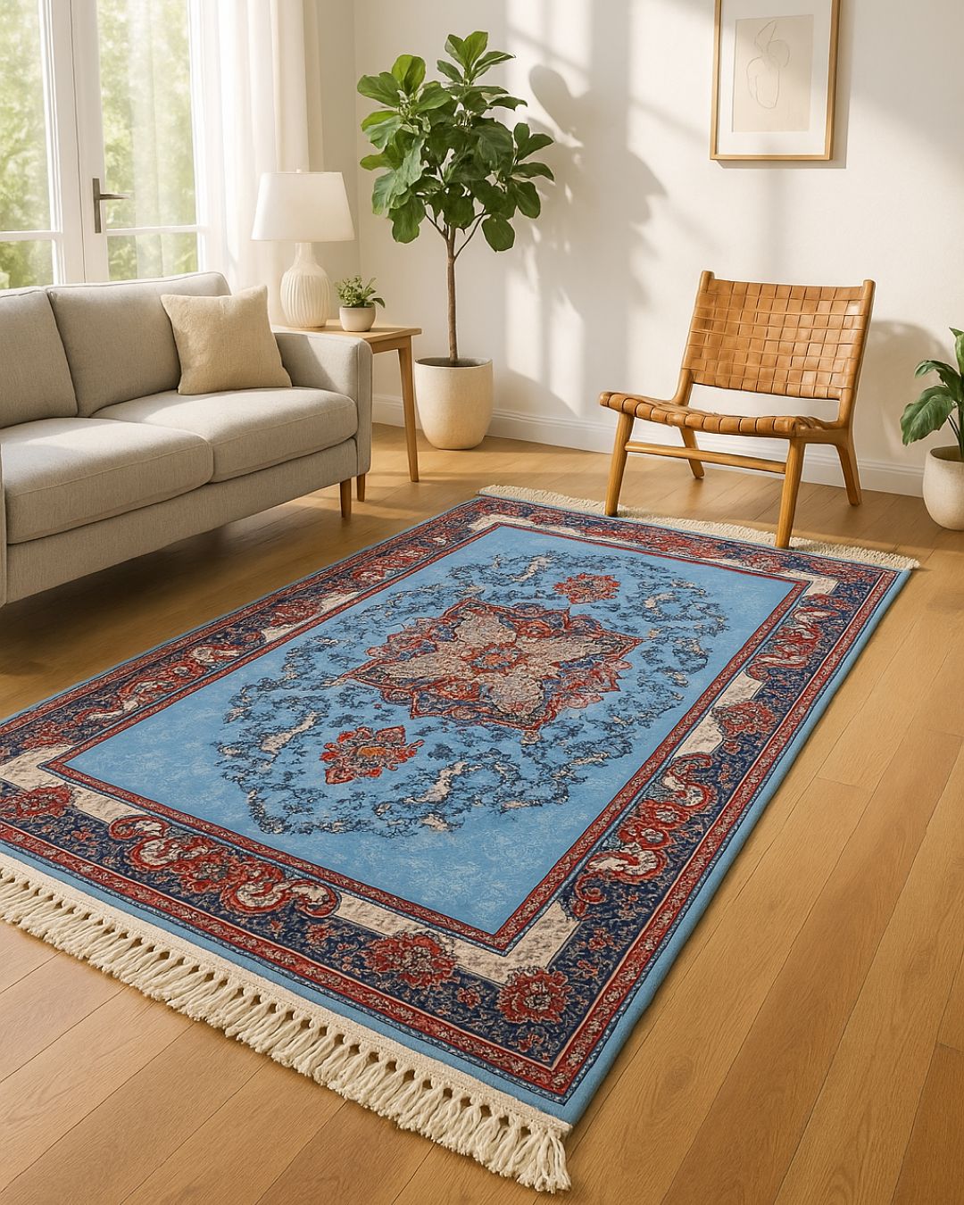 Elegant Design: The delicate floral patterns in misty blue tones add a refined touch to your living space, embodying the essence of Persian artistry.