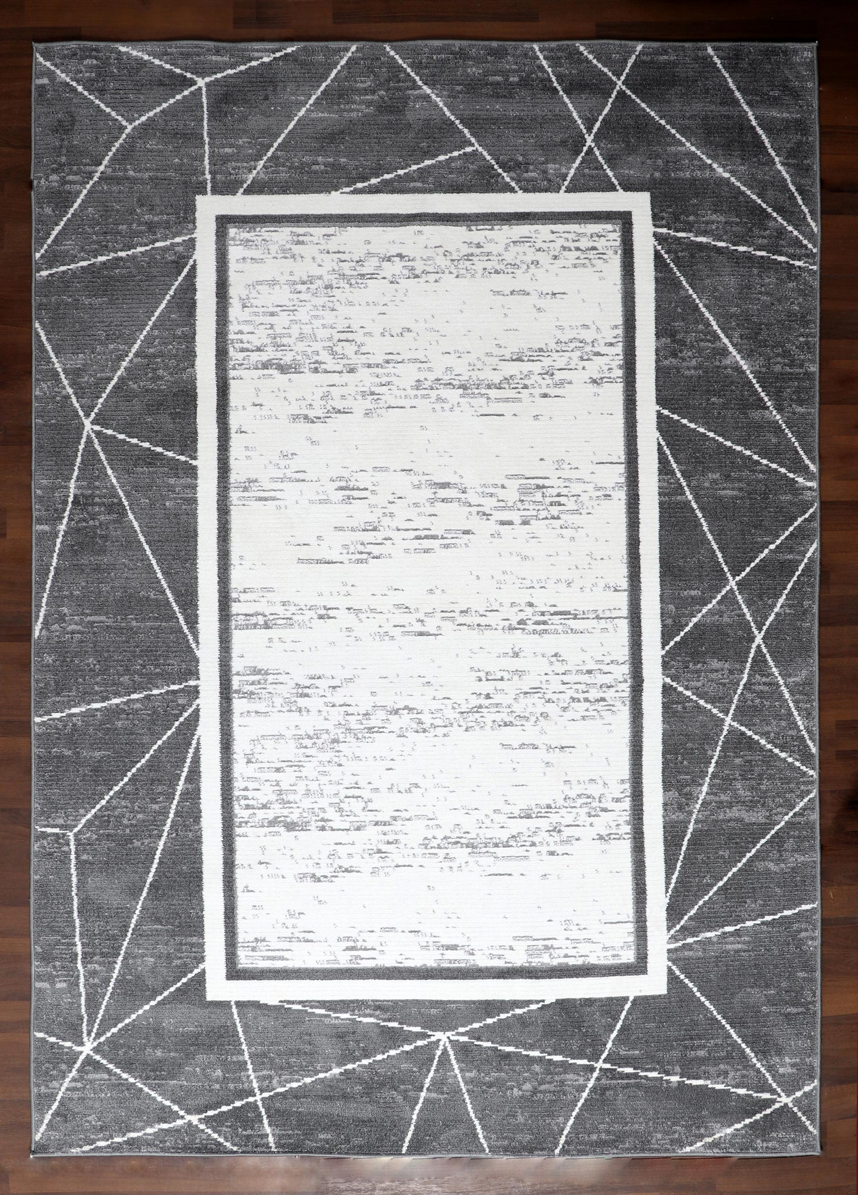 Elevate your living space with this sophisticated geometric rug, featuring a contemporary design in shades of gray and white. This rug is perfect for modern homes, offering a stylish yet understated charm to any room. Ideal for living rooms, bedrooms, or offices, it provides both aesthetic appeal and comfort.