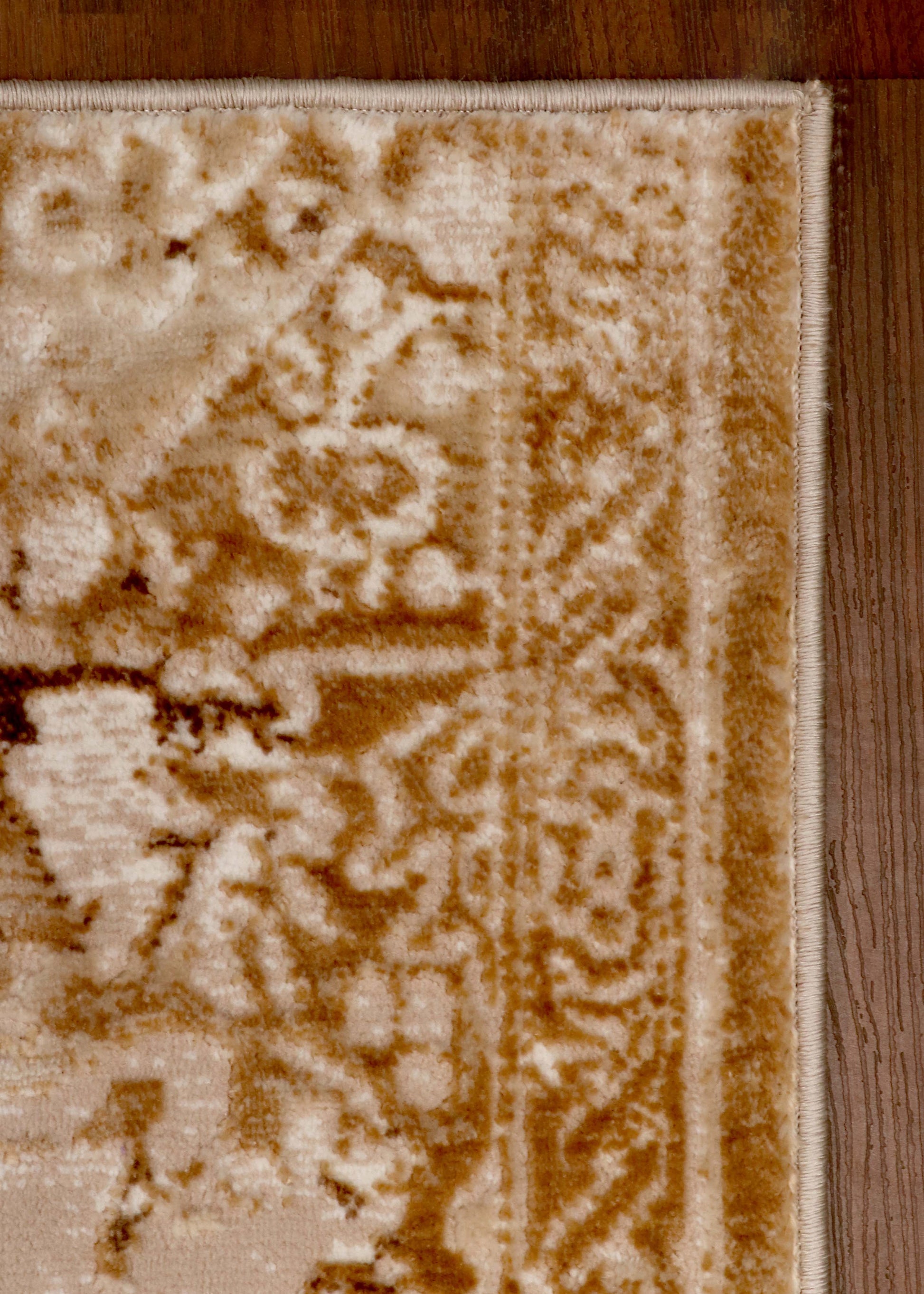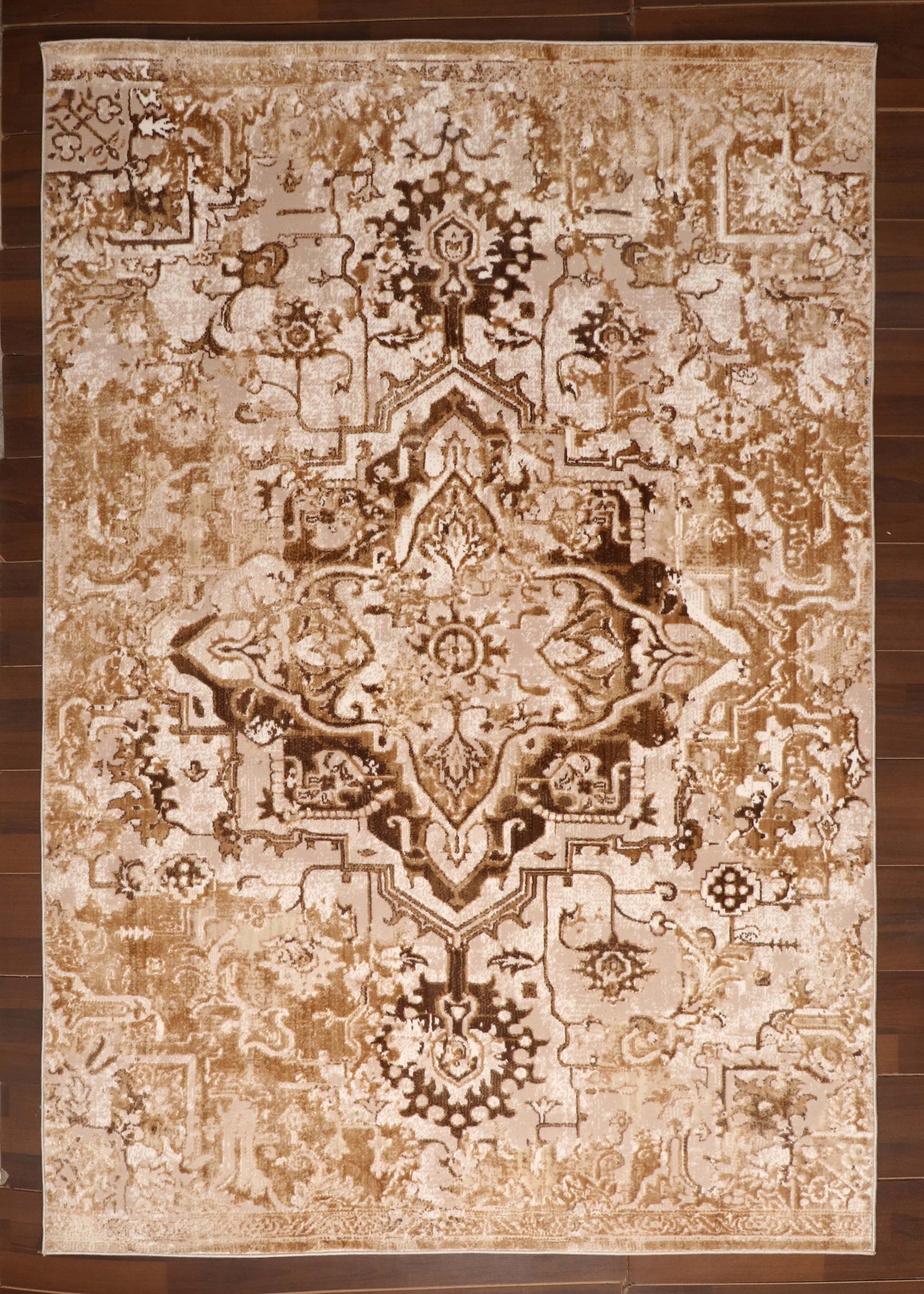 Design: Ornate traditional design with a distressed, vintage look and a central medallion pattern for timeless elegance.