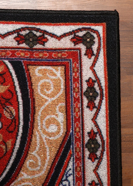 Floral Waves Beige & Red Pattern Rug - Felt Backing
