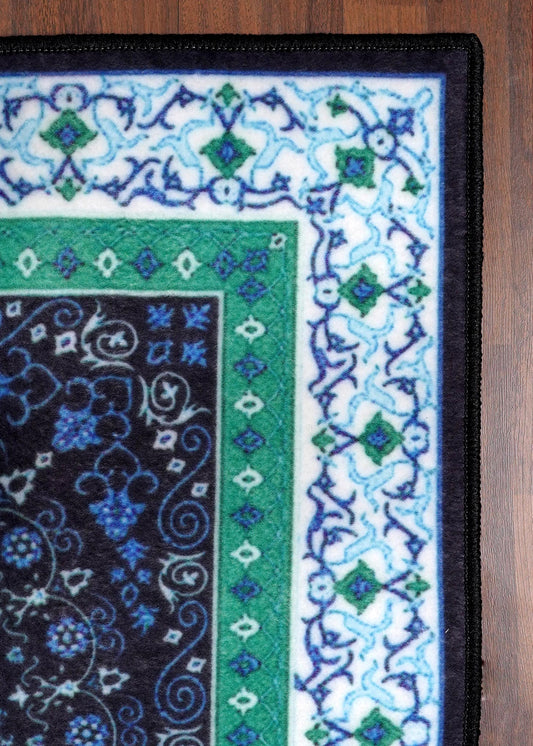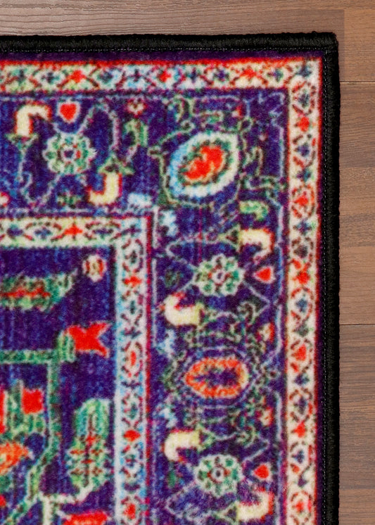 Royal Medallion Navy Blue Floral Non-Woven Rug with Felt Back