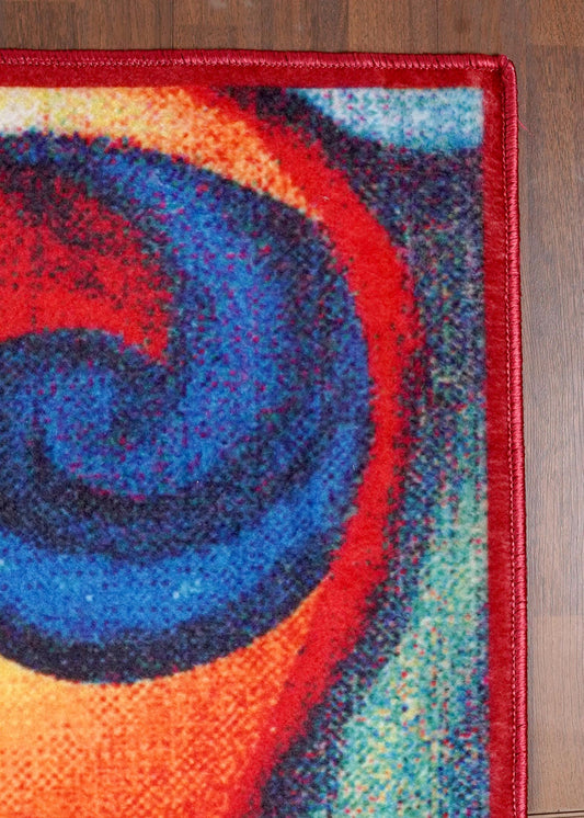 Multicolor Abstract Swirl Art Non-Woven Rug with Felt Back