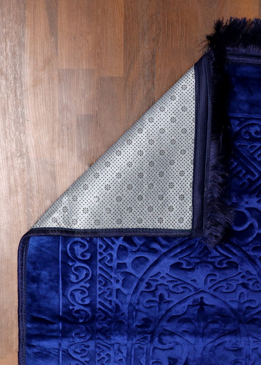 Shiny Blue Mihrab Velvet Prayer Mat