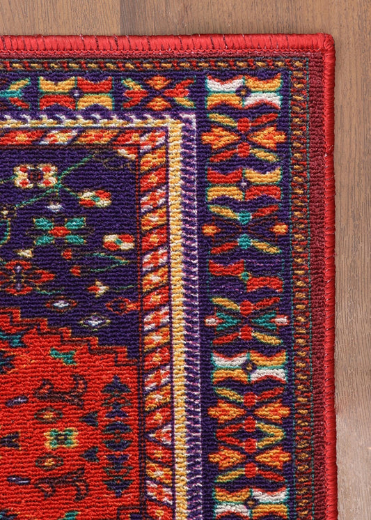 Persian-Inspired Red and Navy Geometric Pattern Runner