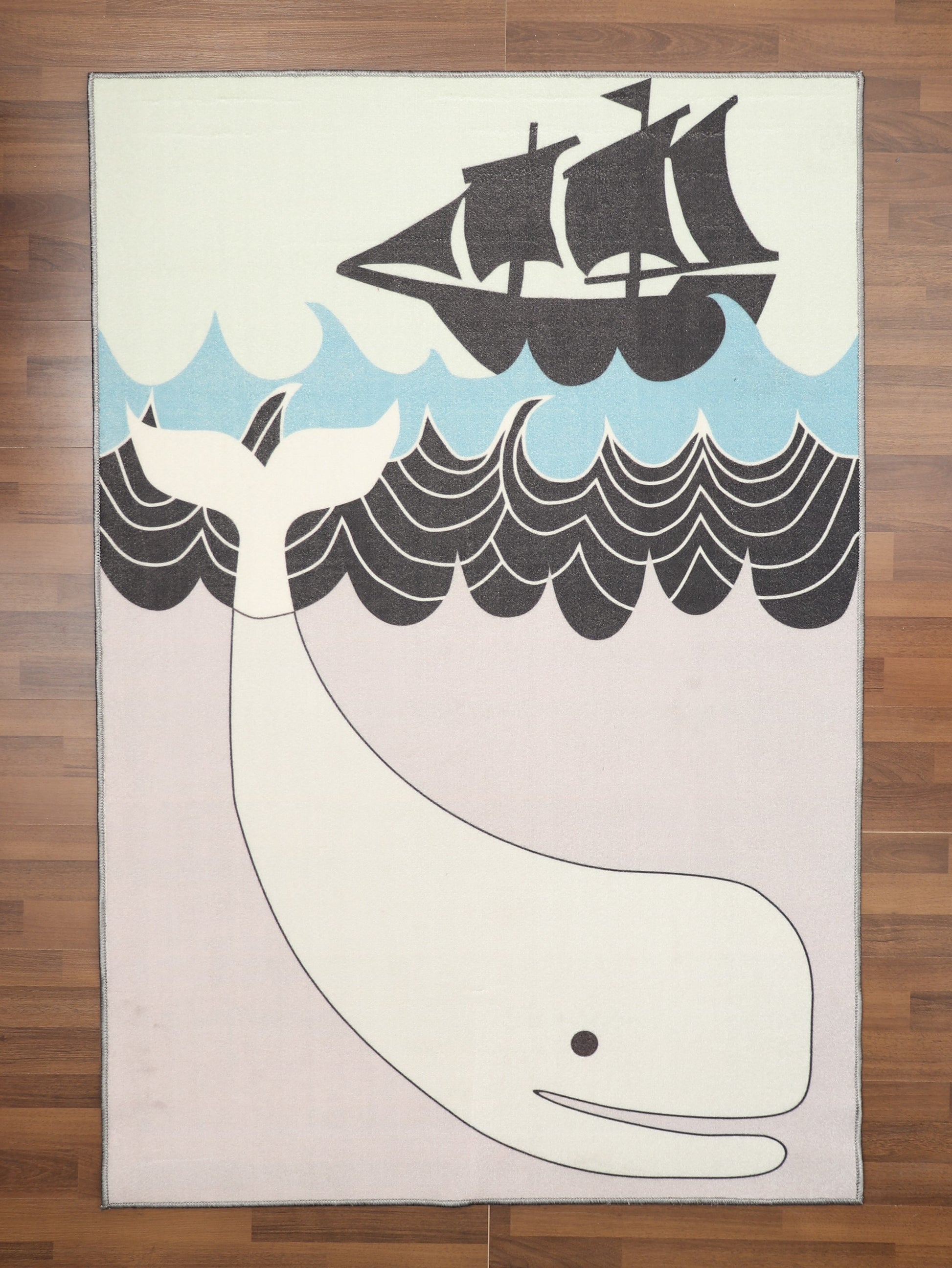 Multi Color Whale With Sea Ship Print Rug