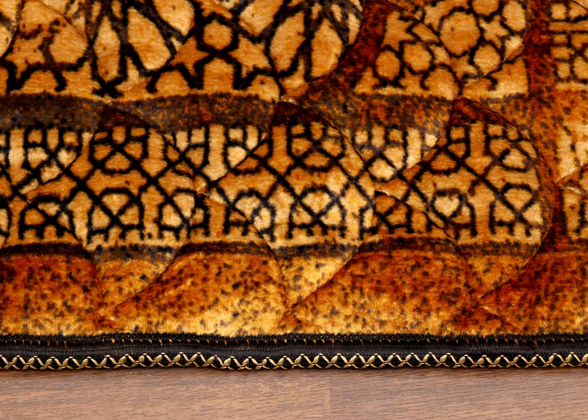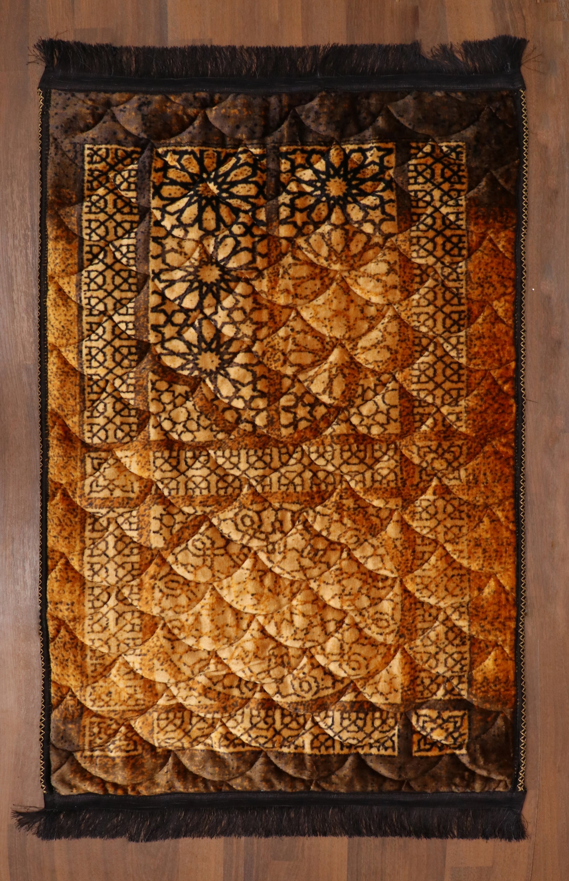 Experience comfort and elegance in every prayer with our Arabic Velvet Quilted Prayer Mat, beautifully crafted in a rich blend of gold and brown tones. Made from premium velvet fabric with foam quilting, this mat offers a soft, luxurious feel while ensuring long-lasting durability.