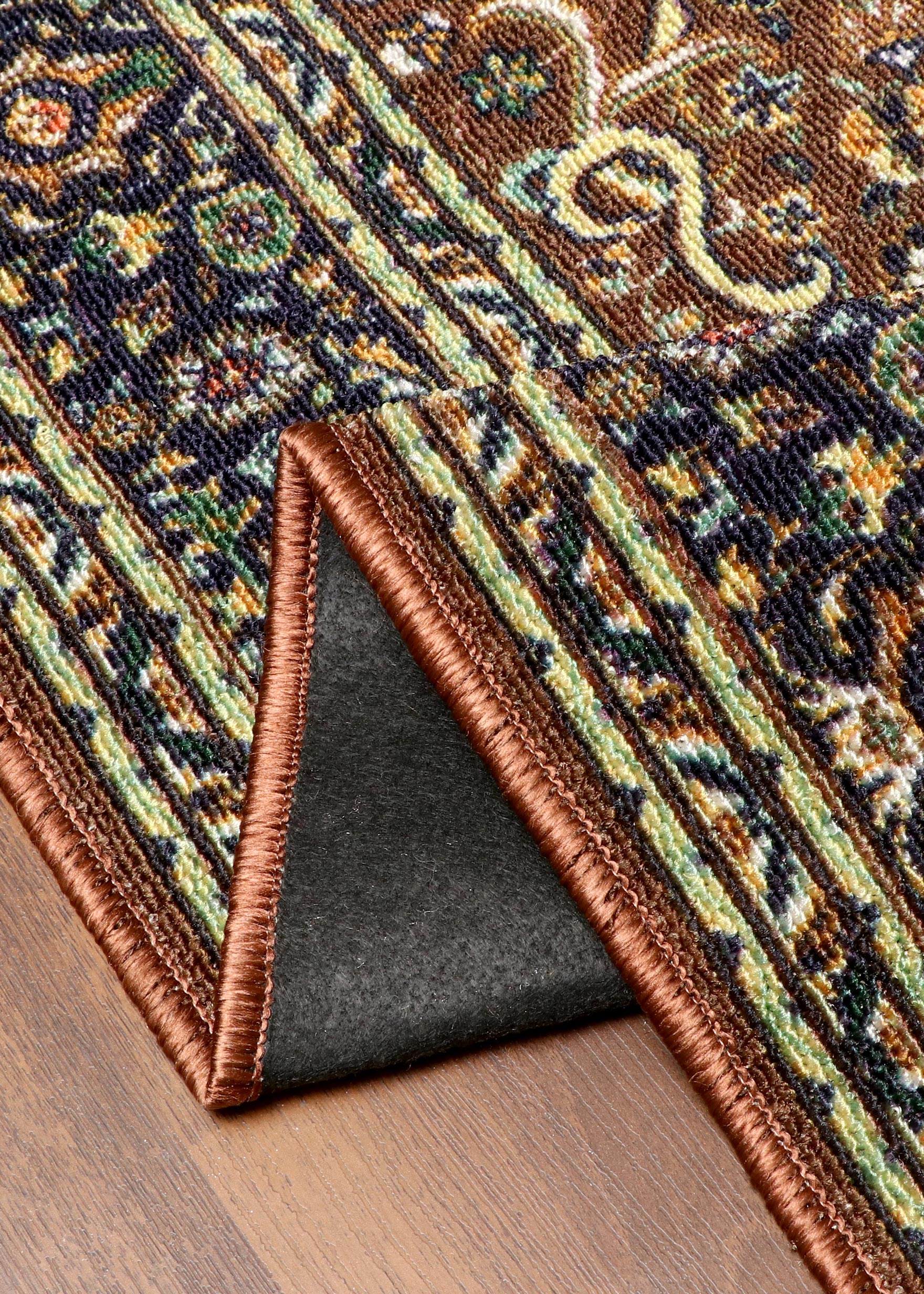 With a soft felt backing for added stability, this rug is as functional as it is beautiful. Its durable construction ensures long-lasting performance, perfect for areas like dining rooms, living rooms, or bedrooms. The rich colors and detailed patterns enhance the sophistication of any interior setting.