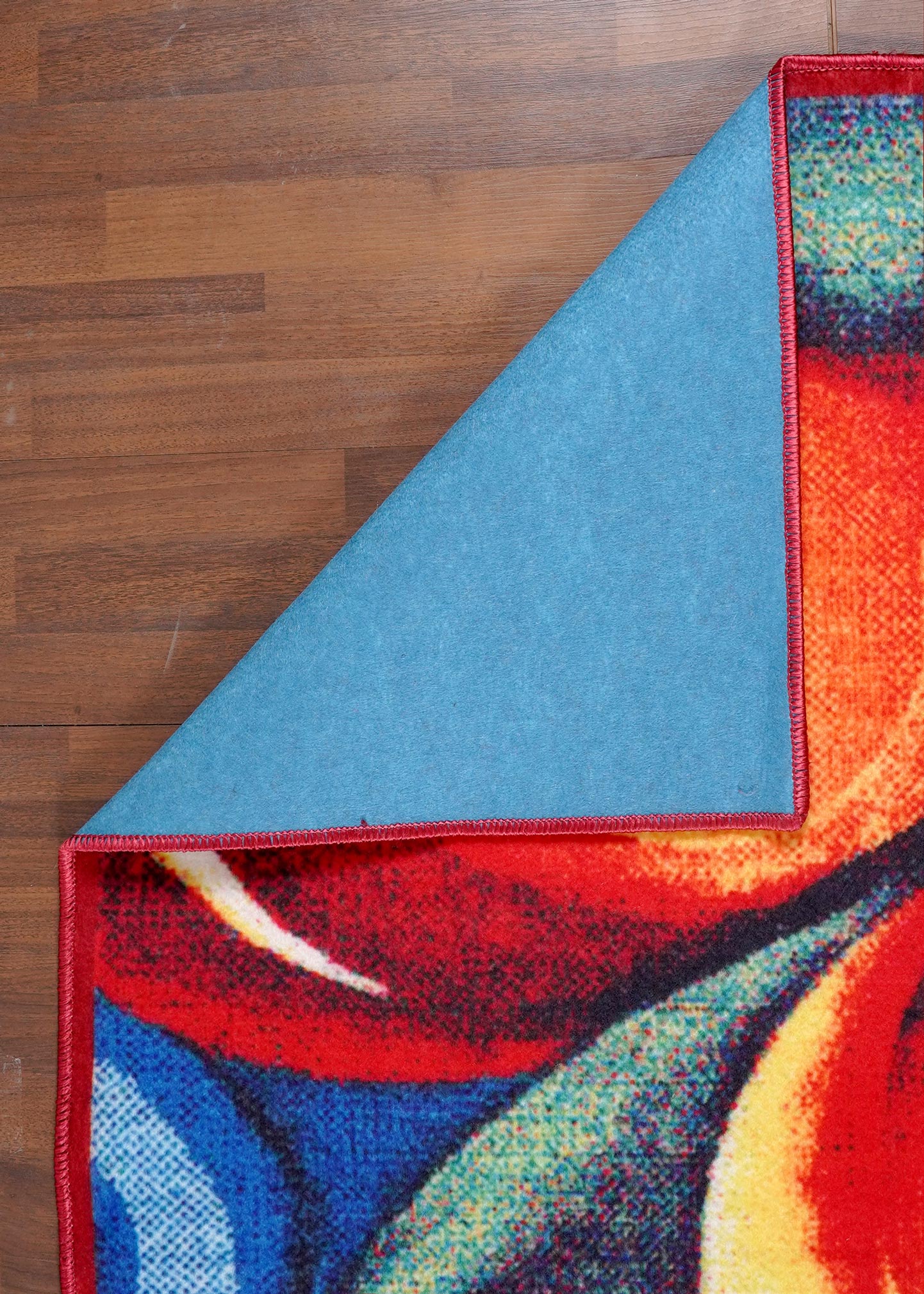 Multicolor Abstract Swirl Art Non-Woven Rug with Felt Back