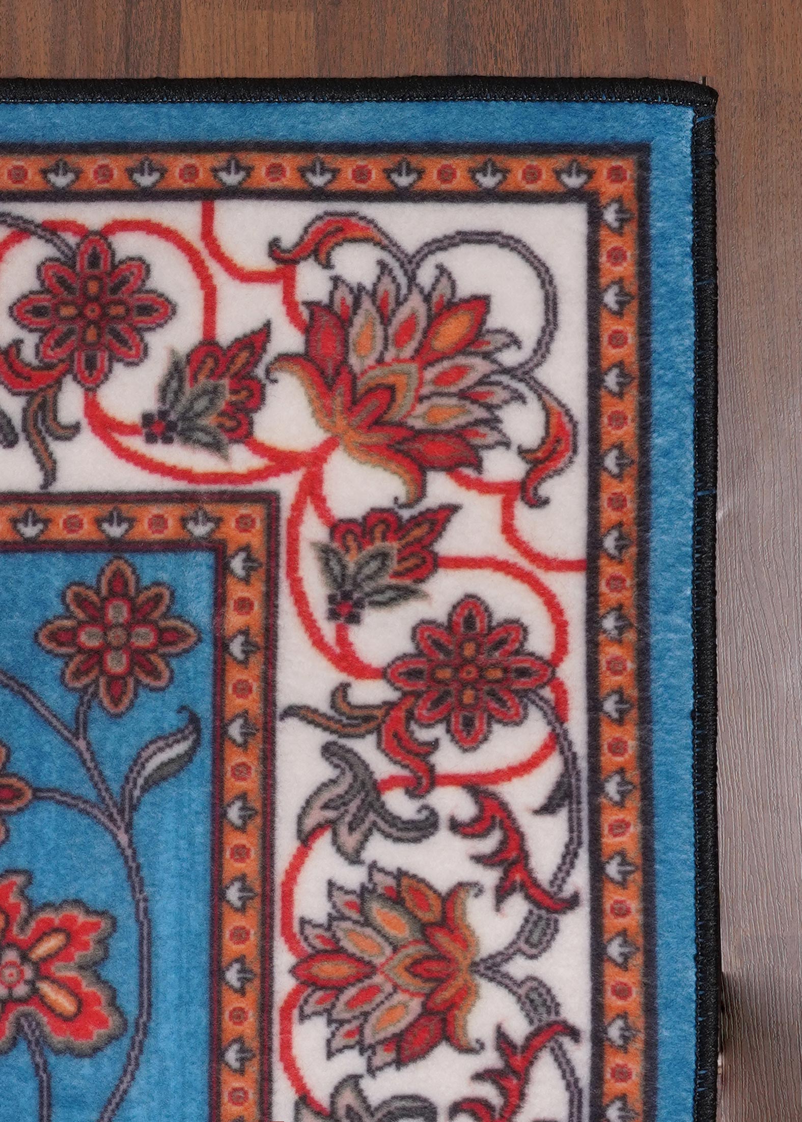 Crafted from high-quality non-woven materials, this rug ensures durability and softness, while the felt backing offers extra comfort and stability. The combination of intricate floral detailing and the medallion centerpiece gives this rug timeless appeal, perfect for any décor style.