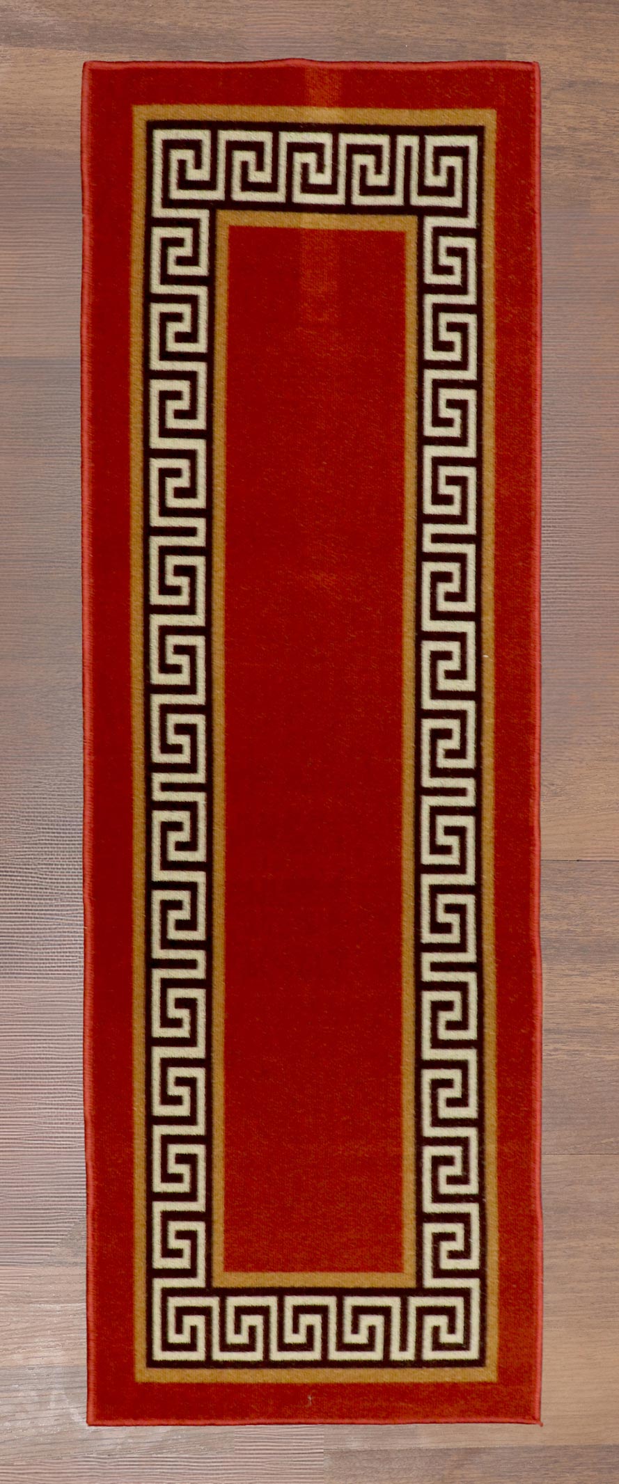 Transform your hallway or entryway with the striking Regal Red Greek Key Tufted Loop Pile Runner. This exquisite piece features a bold Greek key pattern that adds a touch of sophistication and timeless elegance to any space. The vibrant red color serves as a captivating focal point, beautifully complementing both contemporary and traditional decor styles.