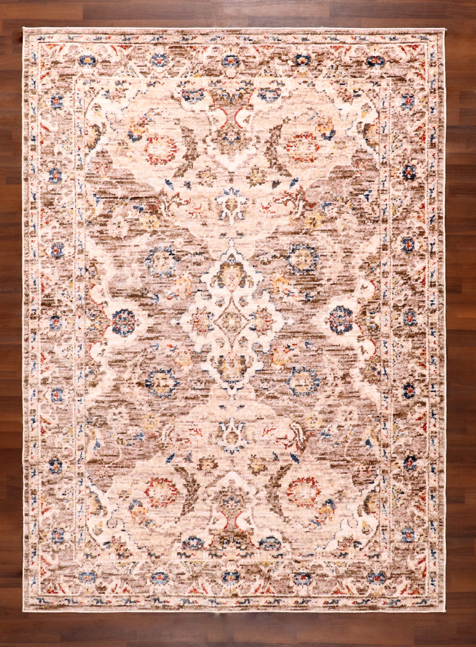 Distressed Heritage Design: The classic Turkish-inspired medallion is intentionally softened to create a subtle, tonal effect, allowing the intricate patterns to merge beautifully with your floor rather than overwhelming the space.